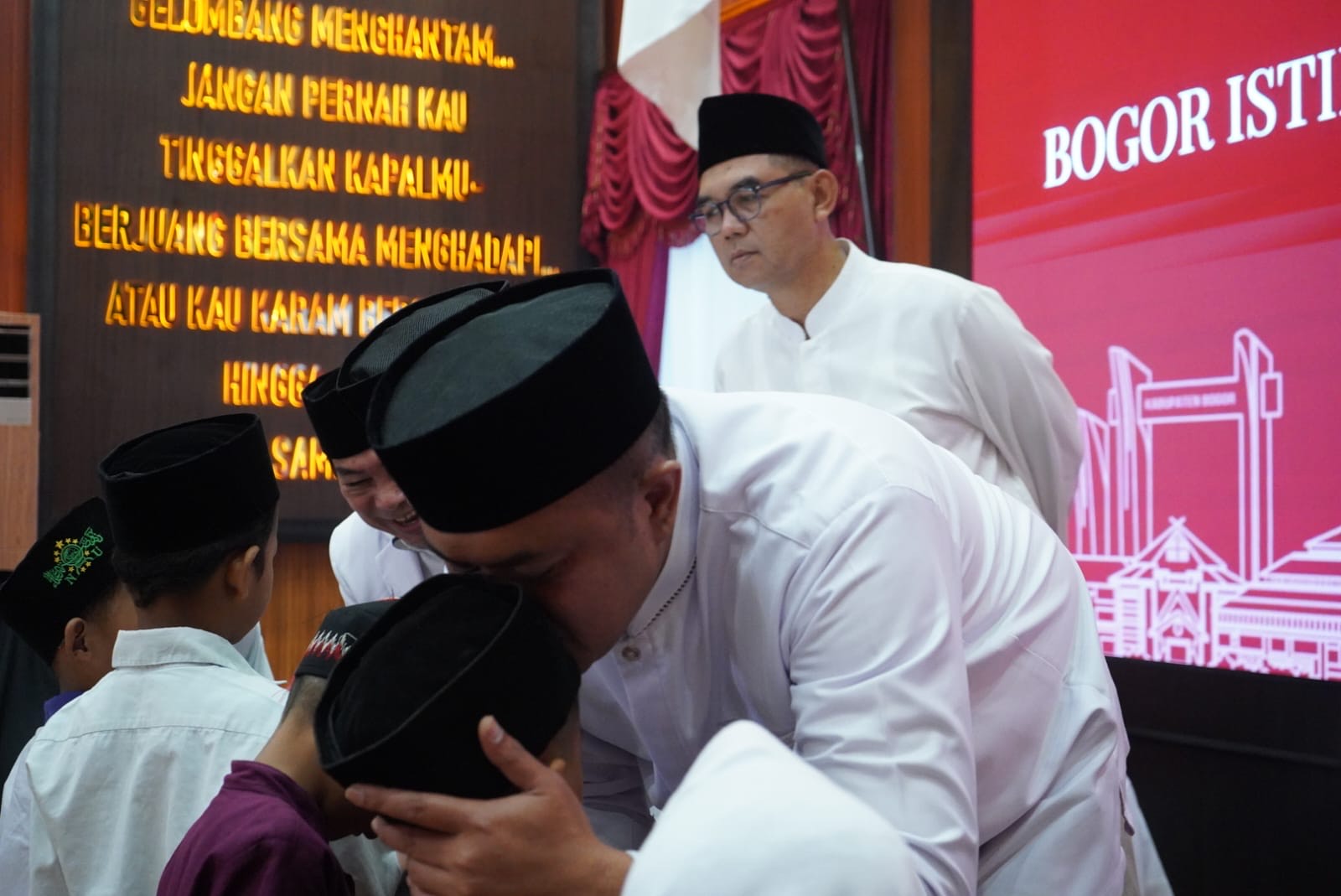Cibinong- Jawapostnews.co.id | Bupati Bogor Rudy Susmanto berbagi kasih melalui santunan anak yatim yang di laksanakan di Aula Soekarno Hatta atau Pendopo Bupati, pada Jumat, (27/6/25).